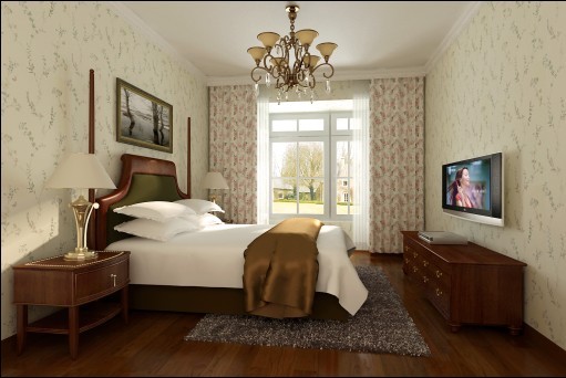 臥室的效果,給人舒適的感覺(jué)。。重色的家具搭配淺色的田園藝術(shù)窗簾給人協(xié)調(diào)舒適的感覺(jué)。。。。。 |