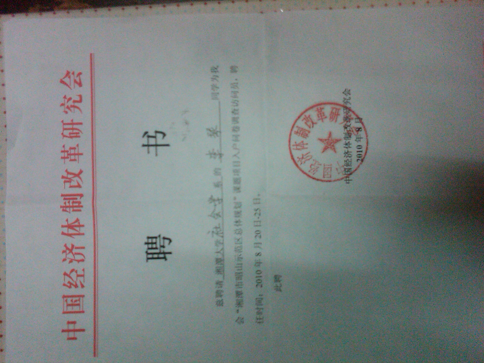 ★2010年8月——2010年9月 參與中國(guó)經(jīng)濟(jì)體制改革研究會(huì)“湘潭市昭山示范區(qū)總體規(guī)劃”項(xiàng)目課題